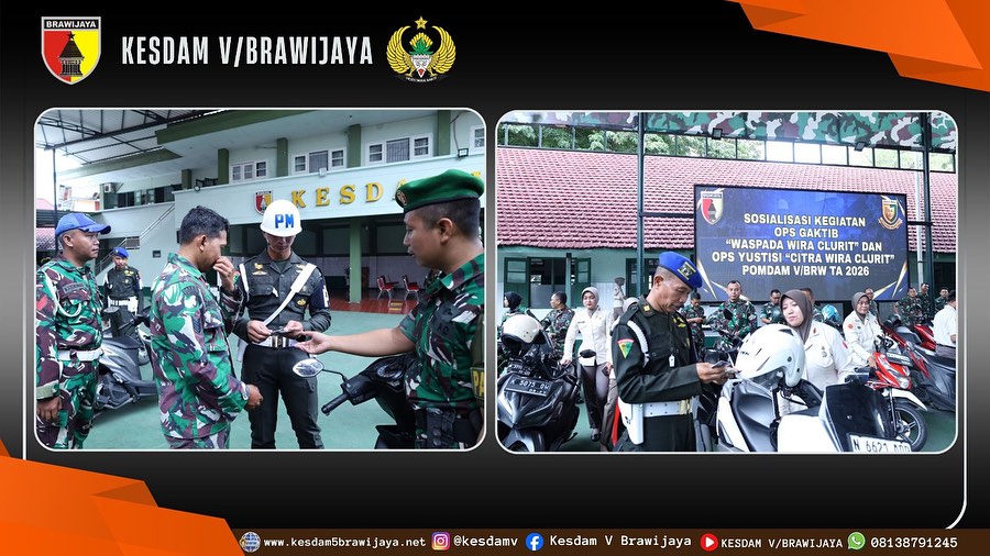 Malang – Denpom V/Malang menyelenggarakan kegiatan Sosialisasi Operasi Gaktib dan Yustisi Polisi Militer Tahun Anggaran 2026 di satuan Makesdam V/Brawijaya dengan sandi “WASPADA WIRA CLURIT”. Kegiatan ini merupakan langkah awal yang bersifat preventif dalam rangka menekan angka pelanggaran hukum, disiplin, dan tata tertib prajurit, sekaligus meminimalisir terjadinya pelanggaran lalu lintas di lingkungan TNI AD.