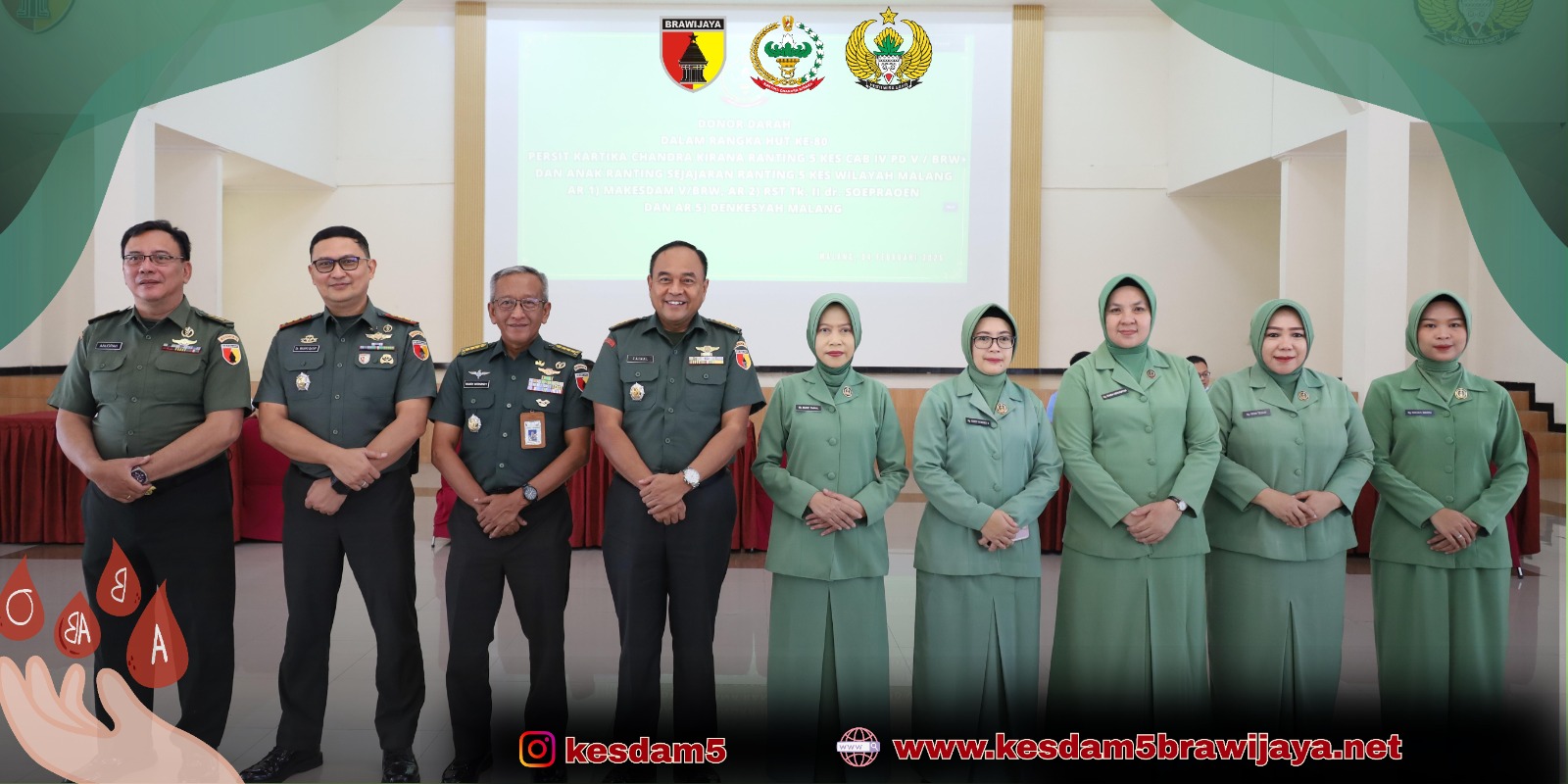 Dalam rangka memperingati Hari Ulang Tahun ke-80 Persit Kartika Chandra Kirana, Persit Kartika Chandra Kirana Ranting 5 Kes menyelenggarakan kegiatan donor darah sebagai bentuk kepedulian sosial dan pengabdian kepada sesama. Kegiatan donor darah ini dilaksanakan di Grha Sabha RST Tk. II dr. Soepraoen Malang dan berlangsung dengan tertib serta penuh semangat kebersamaan.