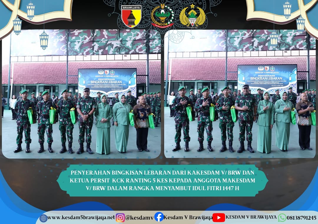 Dalam kesempatan tersebut, Kakesdam V/Brawijaya menyampaikan bahwa pemberian bingkisan Lebaran ini merupakan tradisi yang terus dijaga sebagai bentuk perhatian pimpinan kepada anggota, sekaligus untuk mempererat tali silaturahmi dan kebersamaan di lingkungan Kesdam V/Brawijaya. Diharapkan bingkisan yang diberikan dapat memberikan manfaat serta menambah kebahagiaan bagi anggota dan keluarga dalam menyambut Hari Raya Idul Fitri.