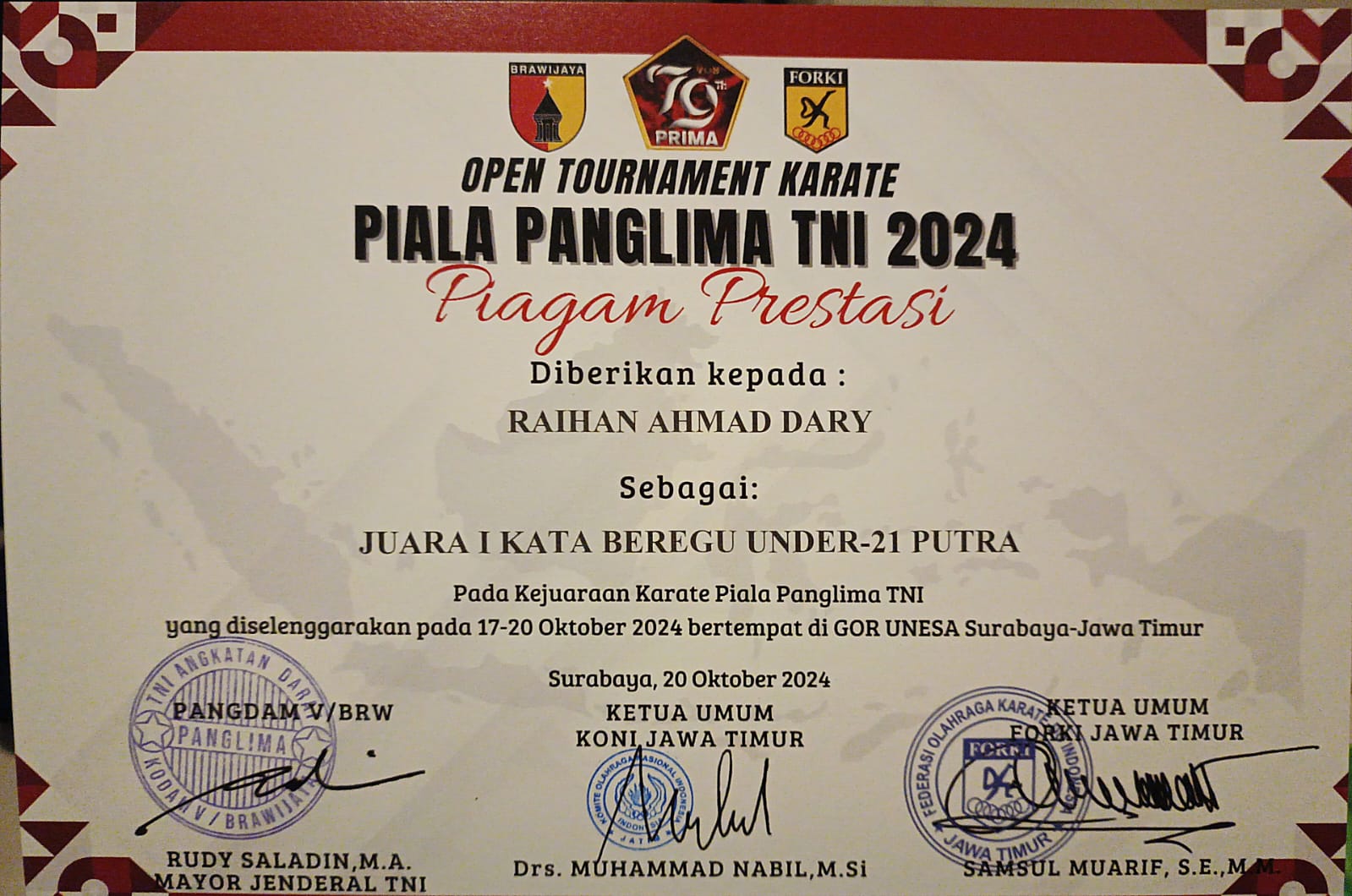 PIAGAM PENGHARGAAN BUPATI MALANG
