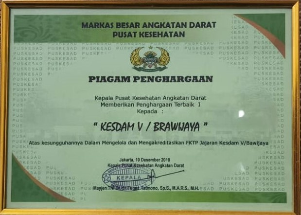 TERBAIK 1 DALAM MENGELOLA DAN MENGAKREDITASIKAN FKTP JAJARAN KESDAM V/BRW