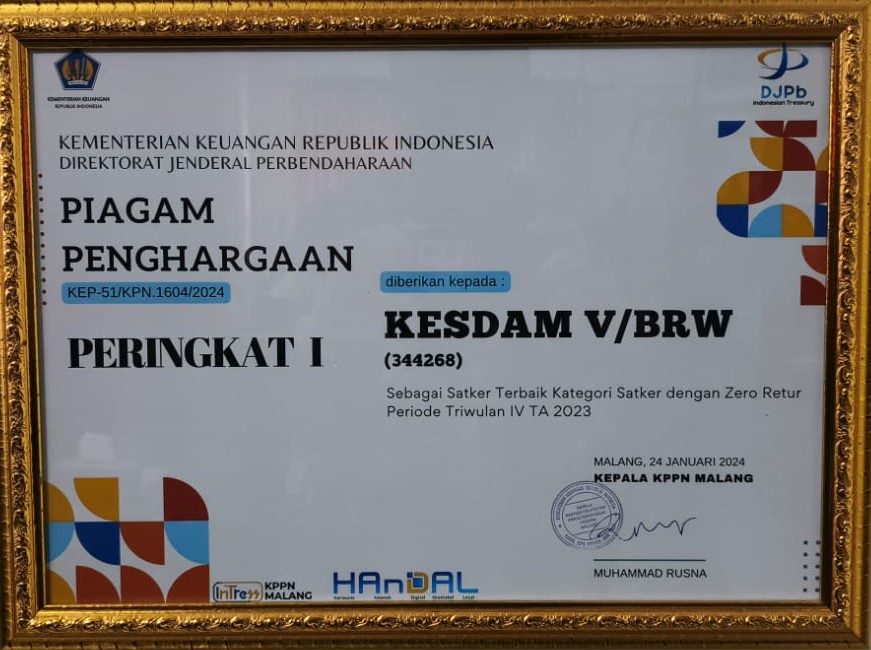 KESDAM V/BRW SEBAGAI SATKER TERBAIK PERINGKAT 1 ZERO RETUR TW IV 2023