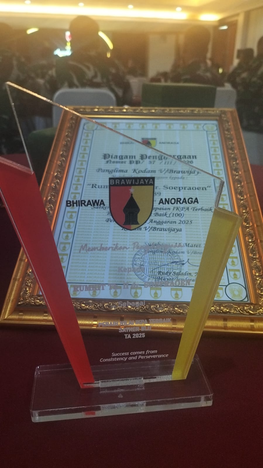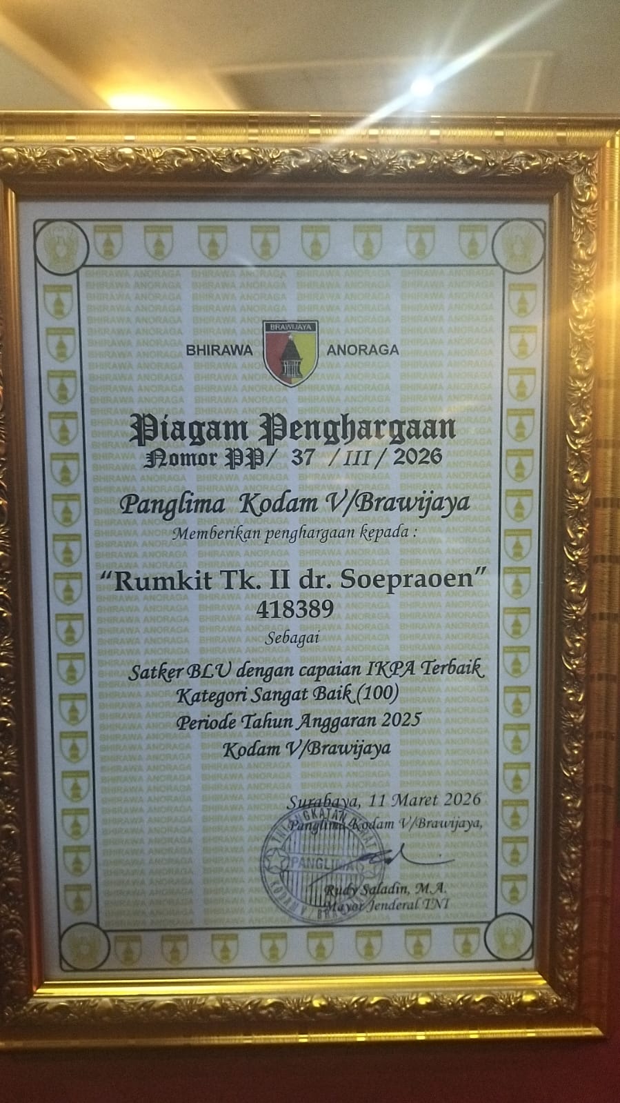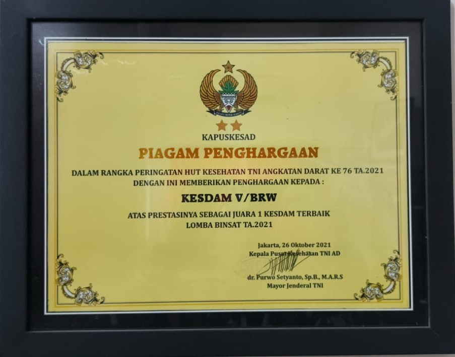 PIAGAM PENGHARGAAN PANGDAM V/BRW – Rumkit Tk.II dr.Soepraoen
