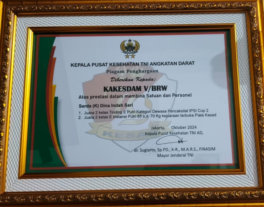 PRESTASI PEMBINAAN SATUAN DAN PERSONEL ATAS NAMA SERDA (K) DINA INDAH SARI