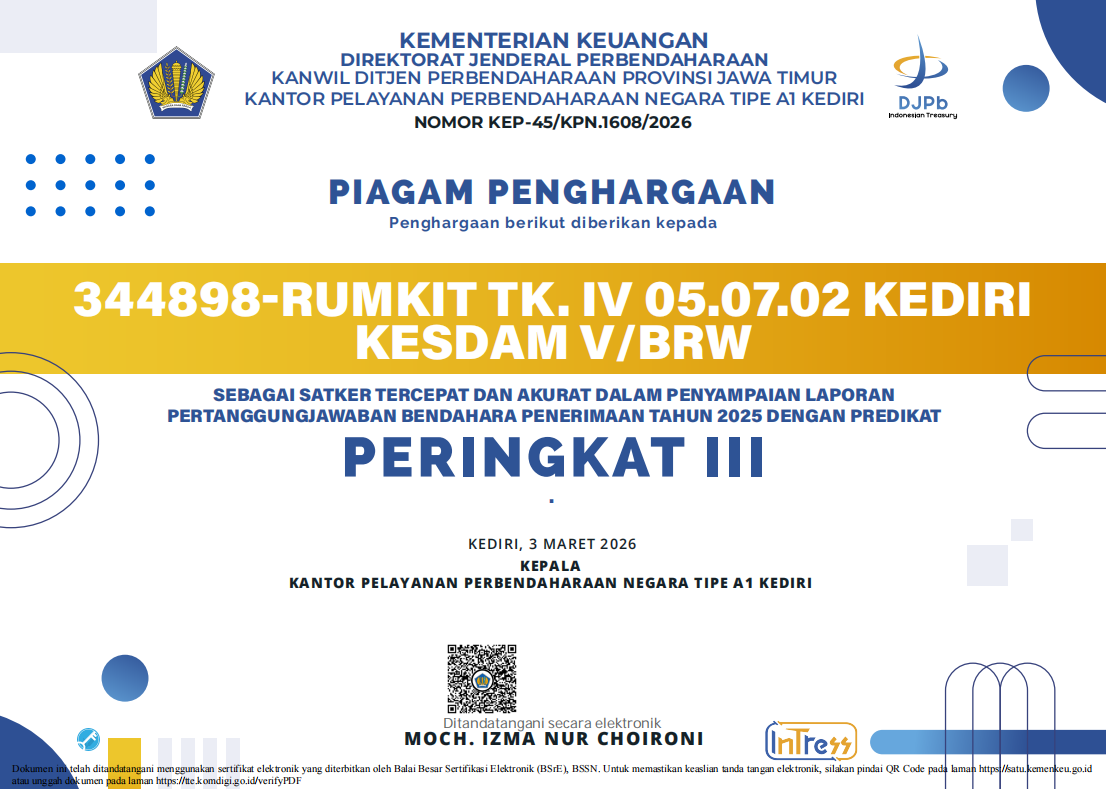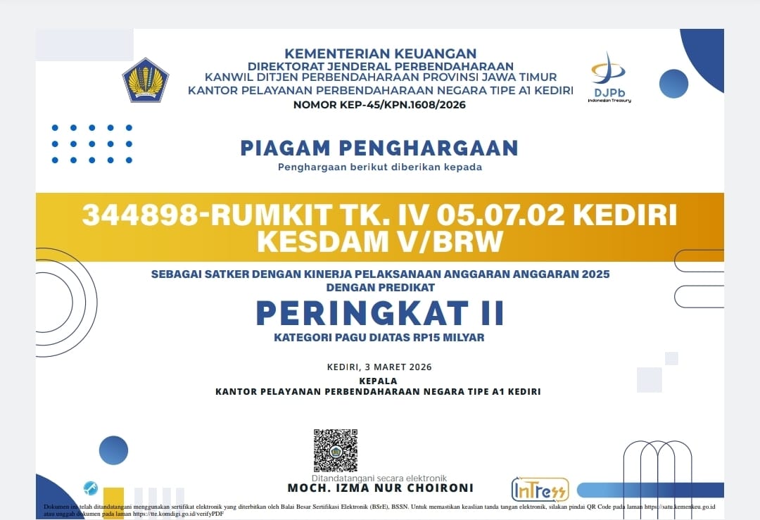 PIAGAM PENGHARGAAN KPPN – Rumkit Tk.IV Kediri
